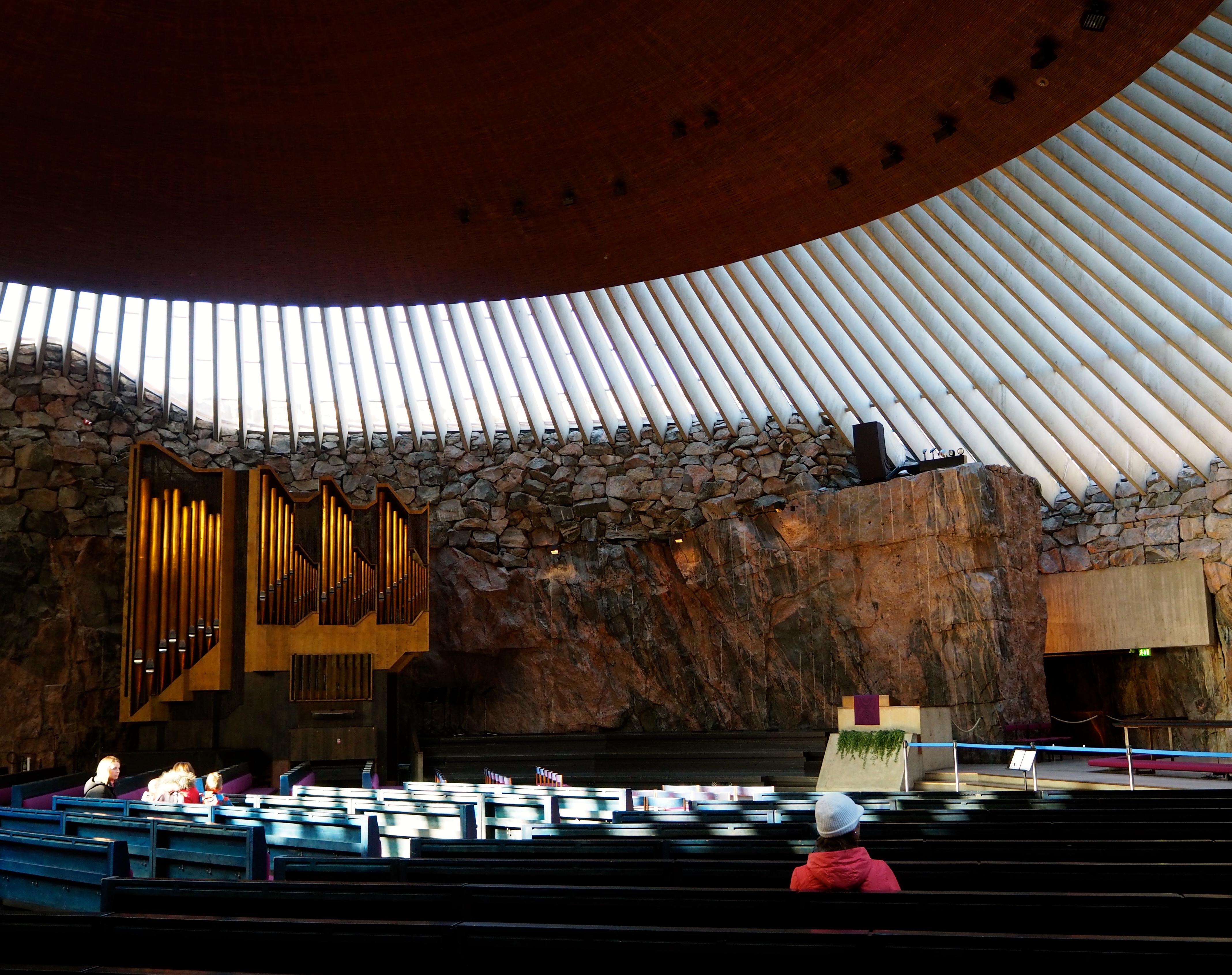 Within walking distance of the city centre, there is always room inside to sit upon arrival and rest your feet. Which, on a snowy Helsinki day like today, means this really is a church that rocks.